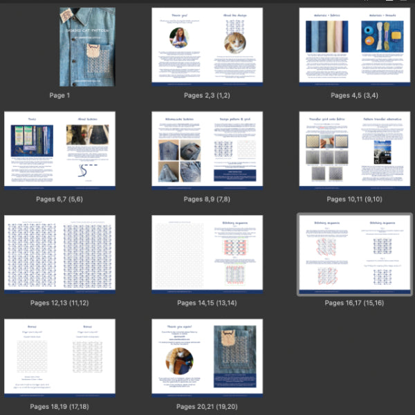 All Rights Reserved. The PDF document (which you'll download after purchasing) including design patterns, graphics, text, and images are owned by Unwritten Stitch and may not be shared, reproduced or re-sold in any manner without the written permission of Unwritten Stitch. The Sashiko cat pattern included in the PDF document is for personal use only and projects made from this pattern may not be sold.